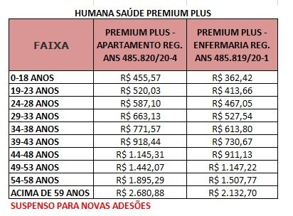 O plano Premium Plus encontra-se suspenso pela Operadora por tempo
