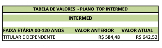 TABELA DE PREÇOS - PLANO TOP - INTERMED