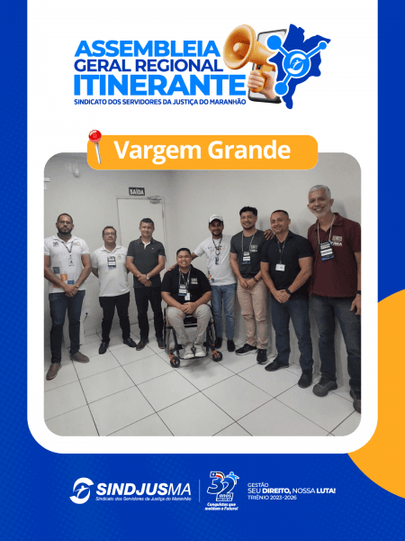 No período de 16 a 20 de março o vice-presidente do Sindicato dos Servidores da Justiça do Estado do Maranhão (Sindjus-MA), Fagner Damasceno, e o diretor financeiro, Márcio Luís, deram continuidade à agenda da Assembleia Geral Regional Itinerante Extraordinária, que está percorrendo o Maranhão com o objetivo de debater e deliberar sobre a atualização do Estatuto Social. A iniciativa busca garantir que o sindicato evolua em sintonia com as necessidades e demandas da categoria.