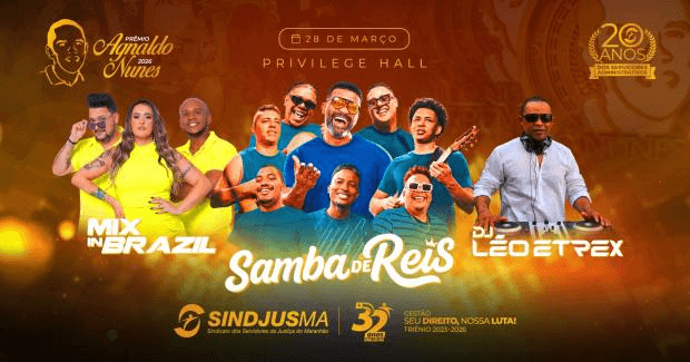 Em seguida, a animação e agito vem com a Banda Mix In Brazil, comandada pela cantora Mairla Oliveira, recheada com um repertório eclético do cenário musical brasileiro, garantindo muita alegria ao aniversário do Sindjus-MA.